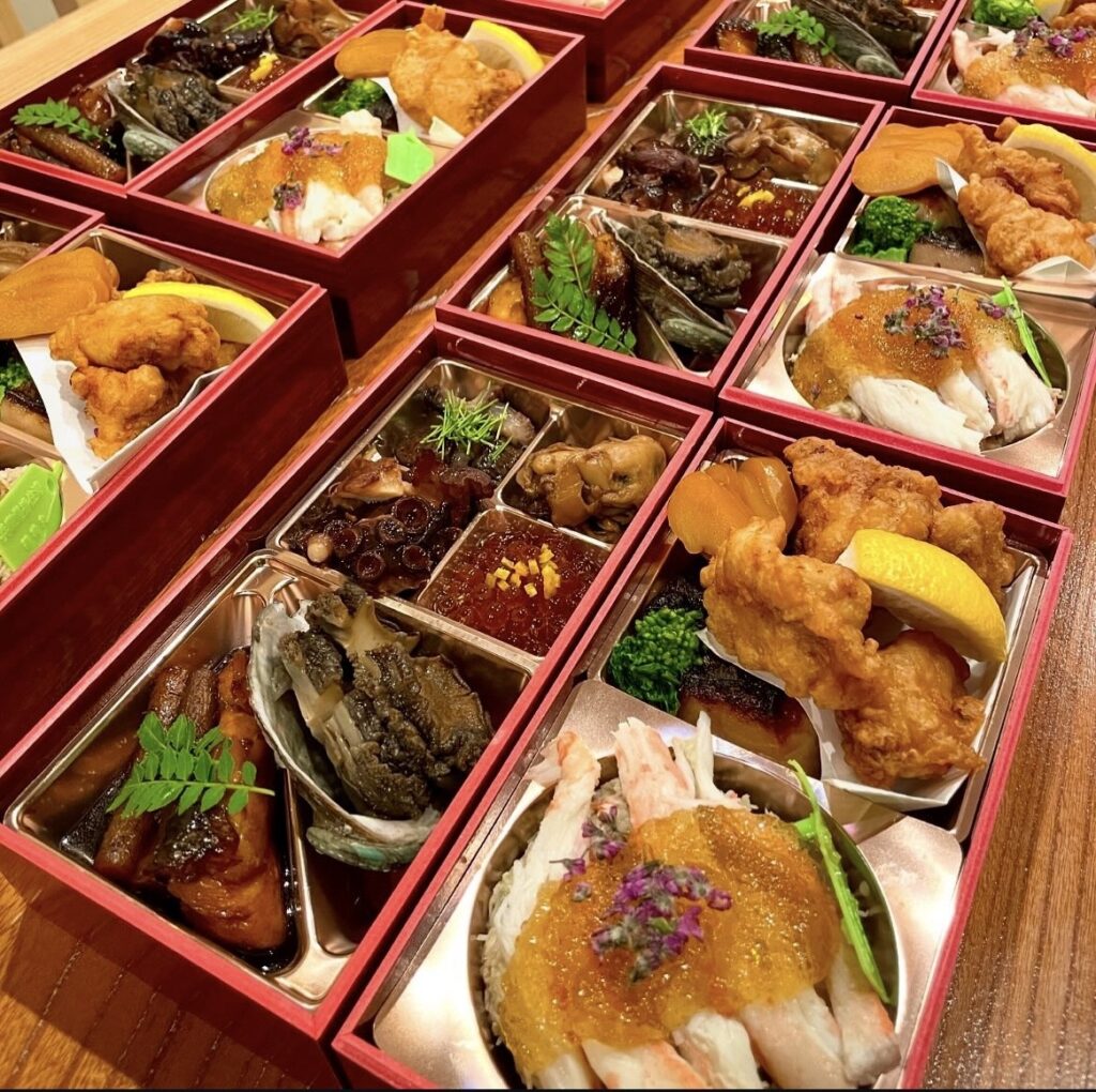 昨年に引き続き少しお値段を上げさせていただき、今年も贅沢にカニや鮑など入れてたいと思っております。